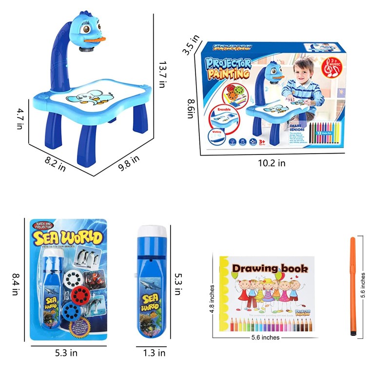 - 【Learning & Creative Trace and Draw Projector Toy】This trace and draw projector can cultivate kids drawing skills and color from now on. This artwork tracing projection can enhance each child's drawing and fine motor skills when copying images onto paper. This kids painting toy playset can make your little artist show their own artistic style.
