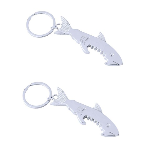2pcs Shark Shape Bottle Opener, Multi-Function Key Chain, Fish Bottle Opener