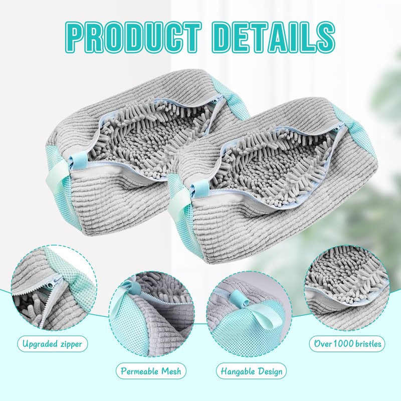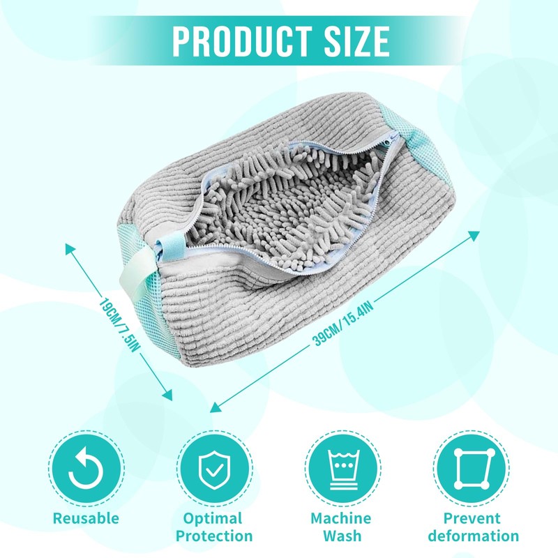 2PCS Shoe Washing Machine Bag, Reusable Laundry Shoe Bag with Zipper Fluffy Fibers, Shoe Cleaning Bag for Washing Machine Washer and Dryer