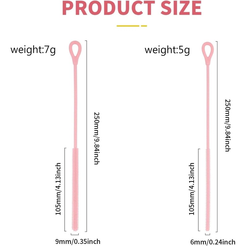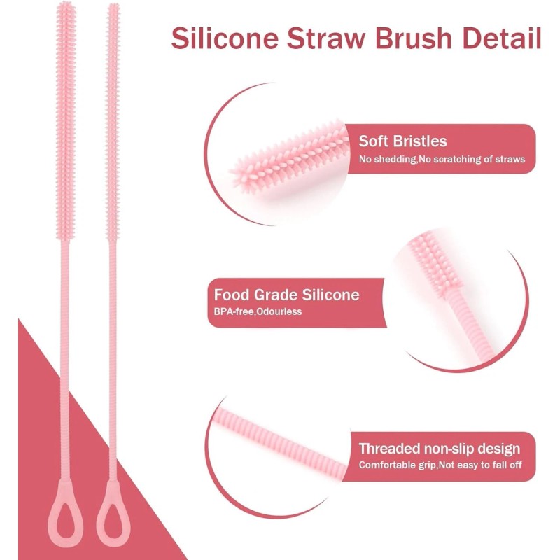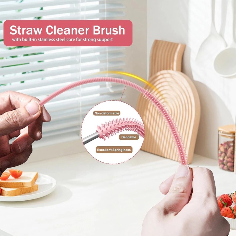 2Pcs Silicone Straw Cleaner Brush, 9.84in Reusable Straw Cleaner with Bendable S