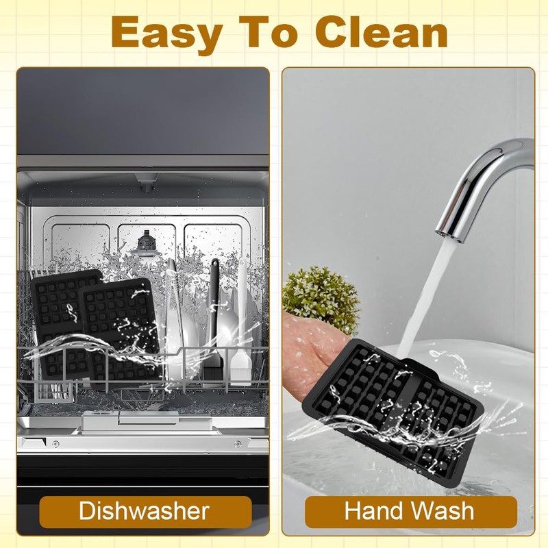 • EASY TO CLEAN: After use, the silicone waffle baking dish can be easily cleaned in the dishwasher or hand washed with warm water and neutral detergent. Thanks to its flexibility, it can be stored away to save space, making it a practical kitchen aid.