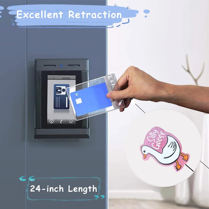 - đź«€Effortless Convenience: The ID Card Holder badge reel boasts a retractable design, up to 24 inches long, ensuring seamless scanning for office entry and exit.