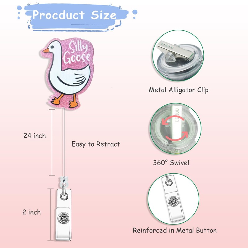 2pcs Silly Goose Funny Badge Holder Retractable Cute Badges Reels Accessories ID Clip for Nursing Nurses Doctor Student Teacher Healthcare Medical Work Office Nurse Student Grad Gift