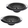 2PCS Sink Strainers,Flexible Silicone and Stainless Steel Kitchen Sink Drainer Baskets,Large Wide Rim 4.5 inch Diameter,Rust Free,Prevent Food Residues from Clogging (Black)