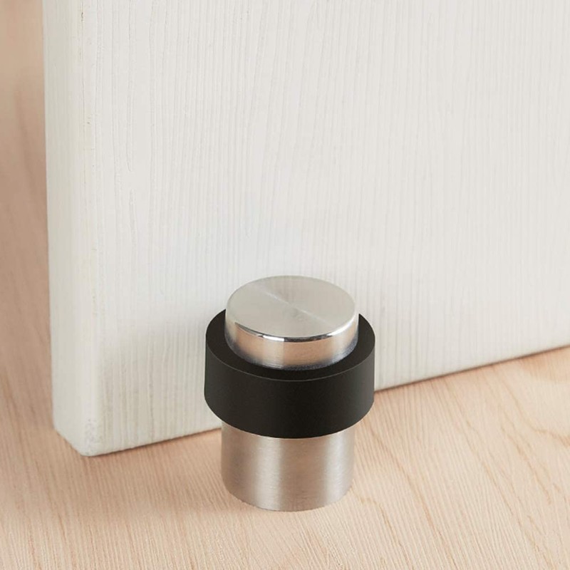 • Our door stop is the perfect solution for stopping doors banging against walls or furniture. It is simple to install into the floor of any room and is ideal for busy commercial premises where doors are constantly opened and closed. Made of solid stainless steel. These door stops have a black rubber buffer collar which prevents any damage or scratching to your doors.