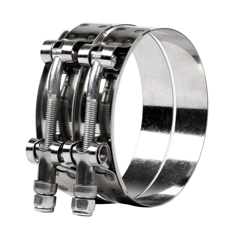 1. T-Bolt clamps provide uniform sealing pressure for a positive, reliable seal which are frequently installed on coolant and air-intake systems for construction, truck, and bus engines. Through the use of bolts and studs design, T-Clamps can be implemented a much more tighter and durable hold for silicon couplers, rather than the normal screw design clamps.