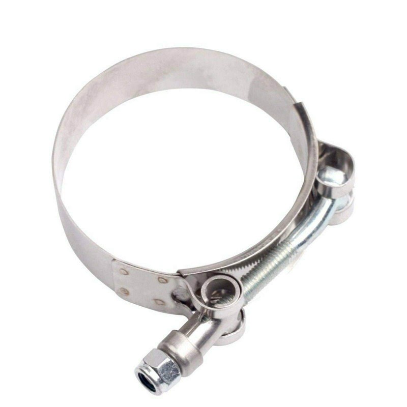 - ➹Our T Bolt clamps are made from heavy duty 301 stainless steel and zinc coated nuts with rounded band edges to protect soft hose materials from cuts.