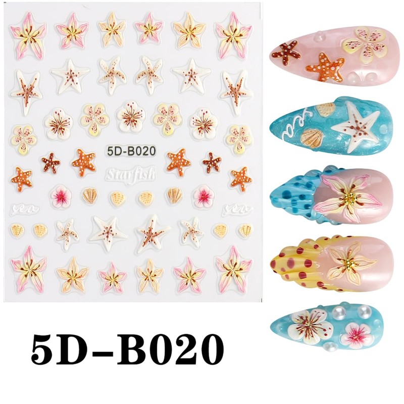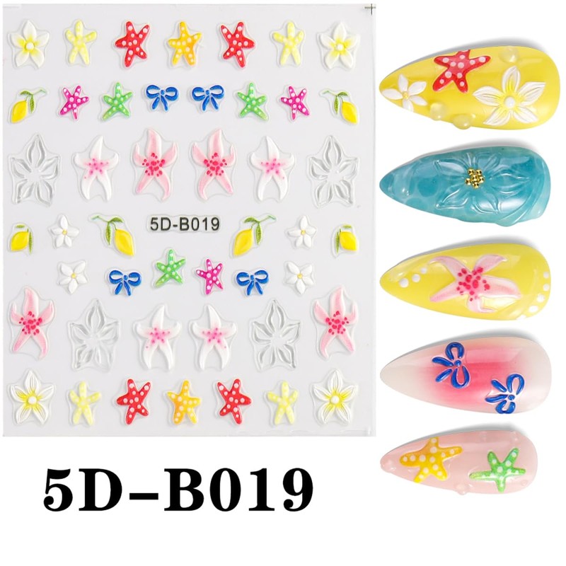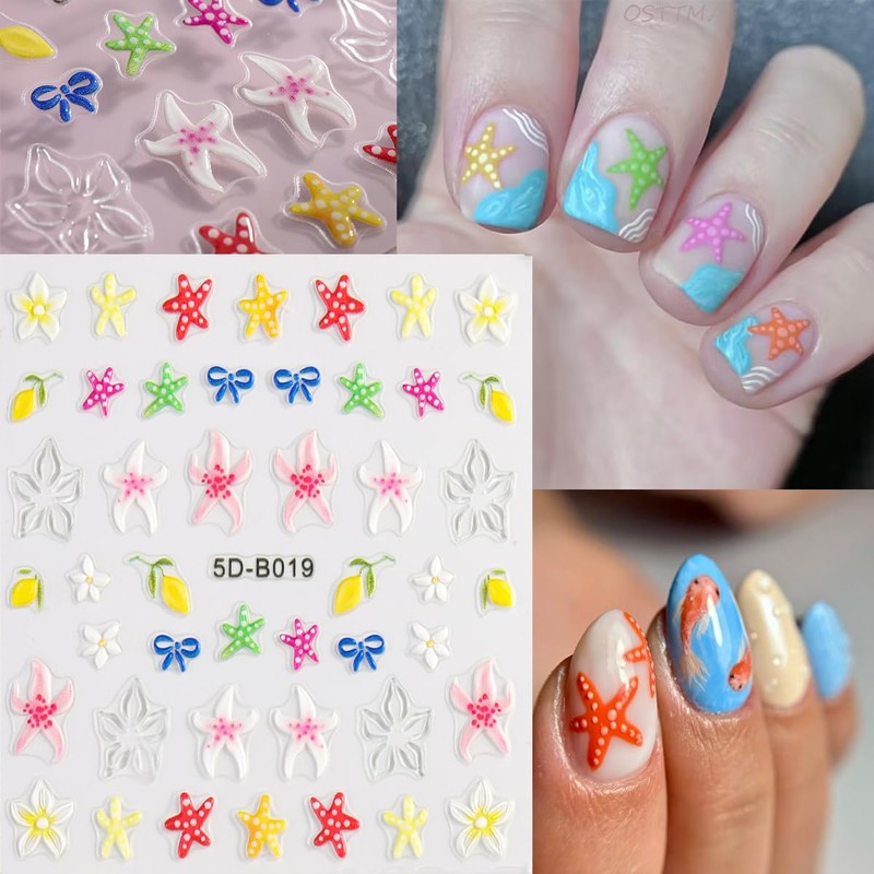- Summer Nail Decals: You will get 2 sheets 5D summer nail art stickers decals for nail art, 5D Embossed Flower Starfish Nail Stickers, self adhesive nail design which can offer you multiple choices, meet your Hawaii nail decoration needs