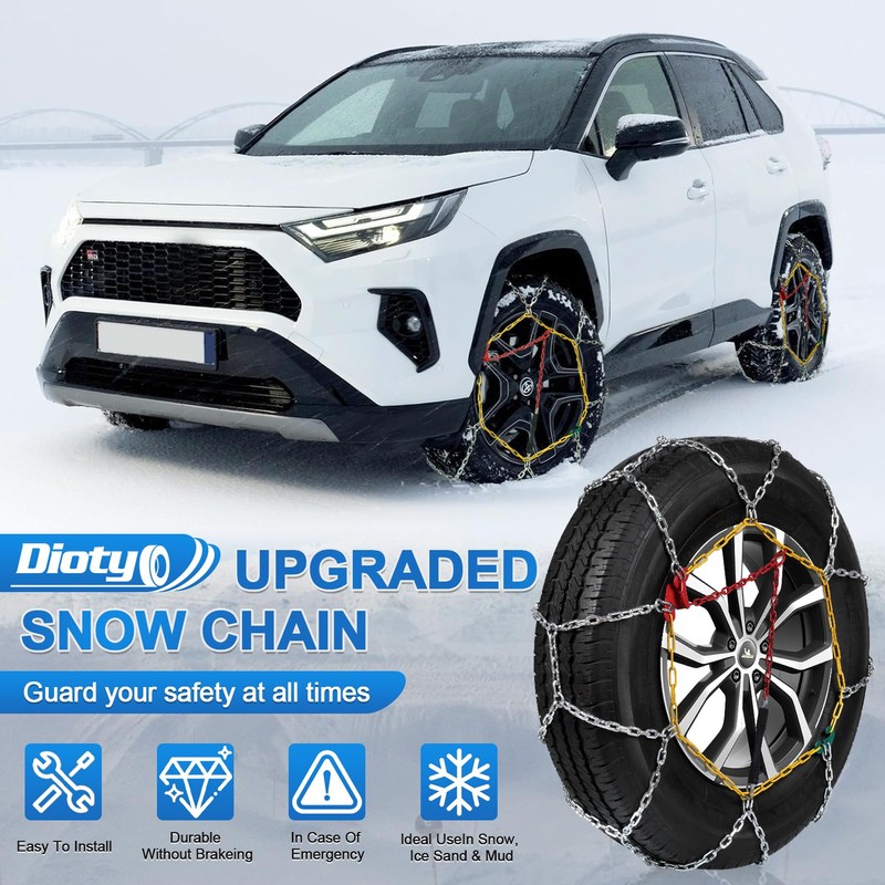 - 【Tough on Snow, Gentle on Tires】 Built to last, conquer winter's worst! Our heavy duty snow chains improve vehicle performance without damaging your tires or rims. Enjoy a quieter, smoother ride with reduced wear. Constructed for longevity, traction you can trust, Dioty tire chains are definitely perfect choice for long-term use during winter months.