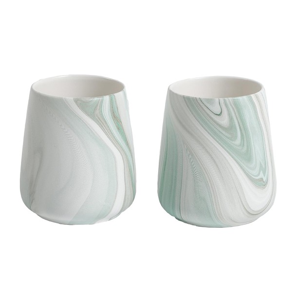 2Pcs Toothbrush Holder for Bathroom - Marble Green Ceramic Tooth Brushing Holders Set, Toothbrush Cup & Toothpaste Organizer for Bathroom Countertop, Makeup Brush Holder, Pen Holder for Home Storage