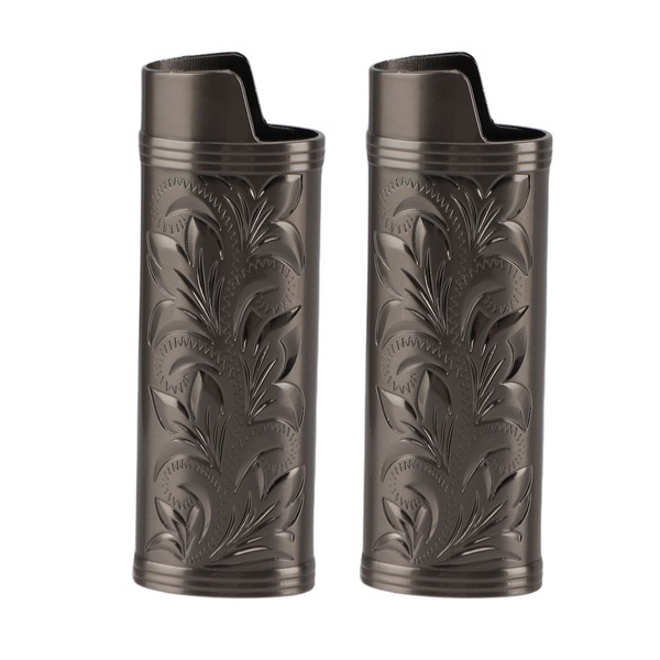 2PCS Torch Lighter Case Vintage Zinc Alloy Eye Catching Long Lifespan Portable Lighter Case Holder Black