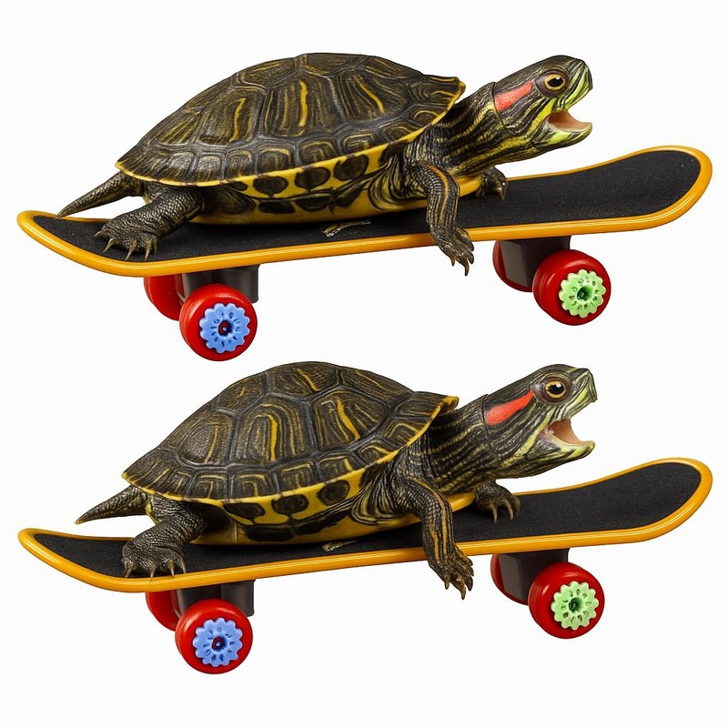 Add some fun and enrichment to your turtle's habitat with these adorable miniature skateboards! This 2-pack of decorative skateboard toys features a sleek frosted black grip tape surface, colorful wheels, and charming golden butterfly ccents. Perfect for aquatic turtles and other small pets, these durable scooter toys provide an engaging way to enhance their environment. The sturdy construction and smooth-rolling wheels allow your pet to interact and play, adding both isual interest and entertainment value to their enclosure. Each skateboard is specially designed with your pet's safety in mind, featuring a non-slip surface and rounded edges. Whether used as a unique tank decoration or an interactive toy, these skateboard accessories will bring a playful touch to your pet's home. Wheel colors are shipped randomly, adding unlimited fun for your pet. These creative skateboard toys are both decorative and enriching for your turtle. Other small pets can also be used oh!