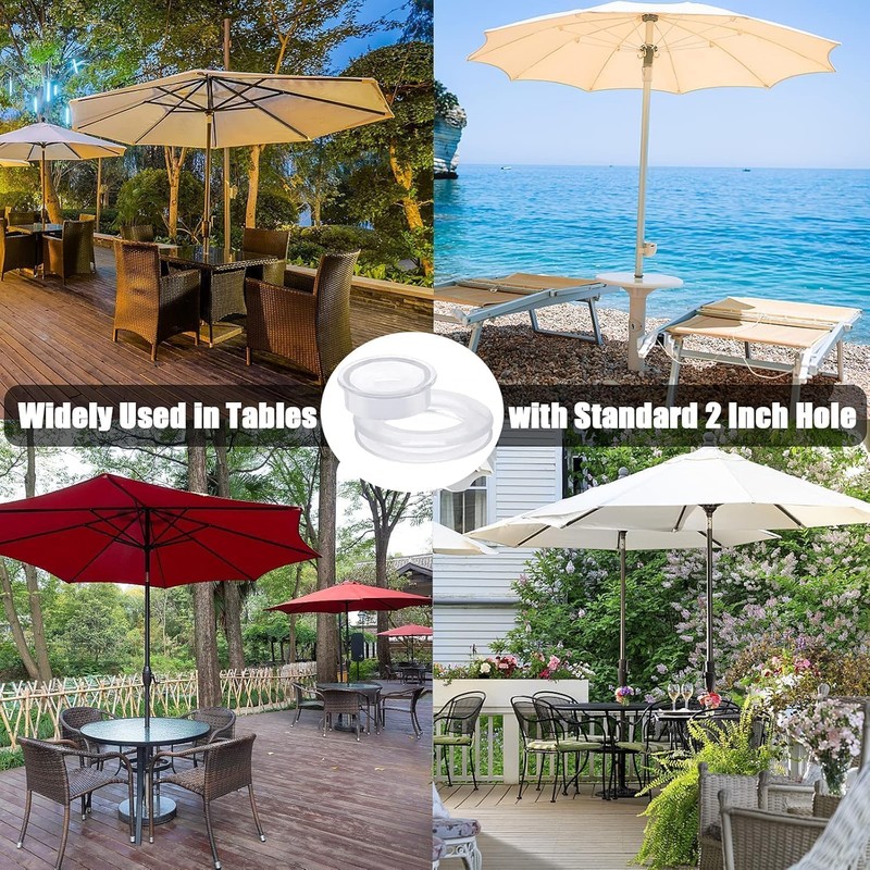 - UNIVERSAL FIT: 2-inch standard size umbrella hole ring and cap set designed to fit most patio tables with umbrella holes