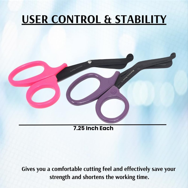 2Pcs Trauma Shears 7.25" All-Purpose Stainless Steel Paramedic Bandage Scissors Black Fluoride-Coated Serrated Blade First Aid Supplies for Medical Students, EMT, Firefighters (Pink + Purple Handle)