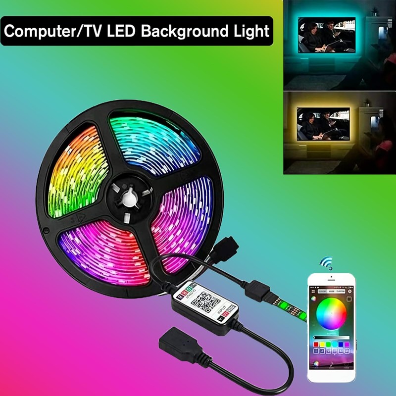 - ❊USB LED STRIP: The TV backlight strip is 2M (6.5 feet) long, used to light up TV (HDTV) / desktop monitor. Comes with 5V USB cable connector and APP control for RGB color changing, flash, strobe, fade, smooth and brightness dimming.