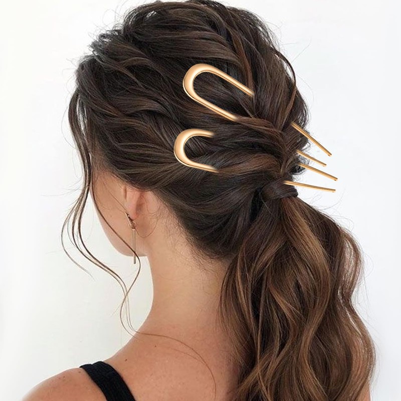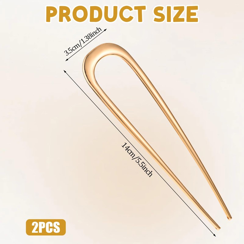 2PCS U Shape French Hair Clip, Metal Hair Fork, French Hairpin, 5.5Inch Hair-Sticks for Women, Gold Hair-Accessories for Thick Hairs and Long Hairs
