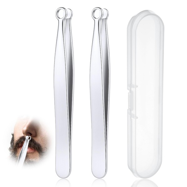 2Pcs Universal Nose Hair Trimming Tweezers, Round Tip Tweezers, Stainless Steel Eyebrow Trimmer Facial Hair Tweezer for Men & Women