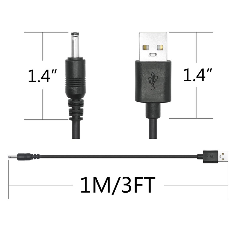 - 【Please Note】This USB A to DC 3.5mm x 1.35mm male plug power cord, DC male plug size outer diameter is 3.5mm and the inner diameter is 1.35mm, wire gauge 22AWG, length 1M/3FT, support 5V devices max 3 Amp fast charging, only supply power use.
