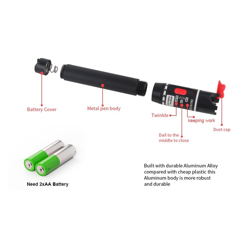 • 【Crash-proof and Dust-proof Design】Our visual fault locator fiber optic is designed with stainless steel head and aluminum body to prevent crash and dust, and the case ground design prevents damage efficiently.