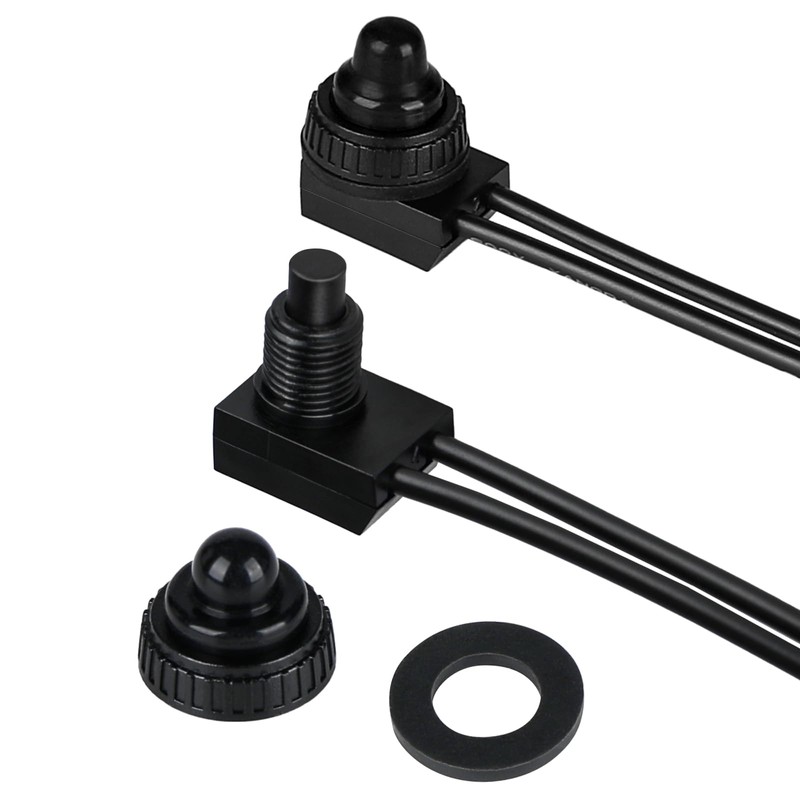 OWOFYDR 2PCS IP67 Waterproof Push Button Switch, 12V DC SPST ON-Off Switch for RV, Automotive, Motorcycle & Bathroom Fan KP-107-2PCS (Black)