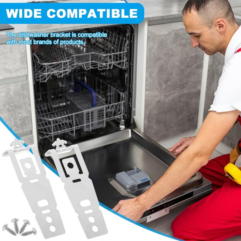 【YOU WILL GET】You will get 2 pieces of dishwasher brackets and 4 screws, which can meet your daily use needs and replacement needs, the dishwasher mounting bracket set provides long lasting stability and reliability, reducing the need for frequent repairs or replacements.