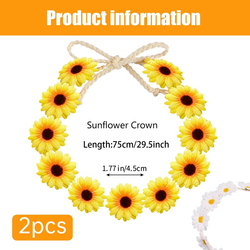 Package Including: Pack of 2 Sunflower hair band.2 different color, yellow and white.
