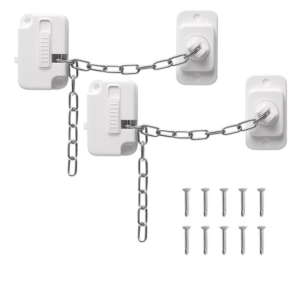 - DURABLE CONSTRUCTION: Crafted from a strong metal chain and durable white plastic housing, this window lock features high-quality materials for long-lasting protection. Comes with mounting screws for secure installation, making it a reliable option for both home and office use.