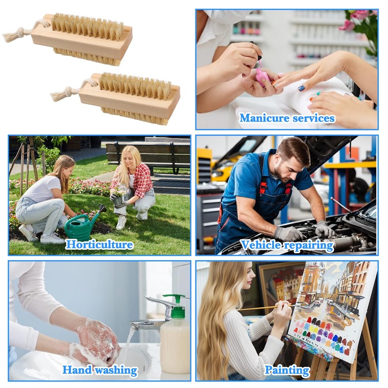 - 【Scope of Application】Sturdy wooden nail brush effortlessly removes dirt, grease, and grime from nails, hands, or even small household items.The perfect pick for mechanics, locksmiths, gardeners, and other professionals involved in manual work