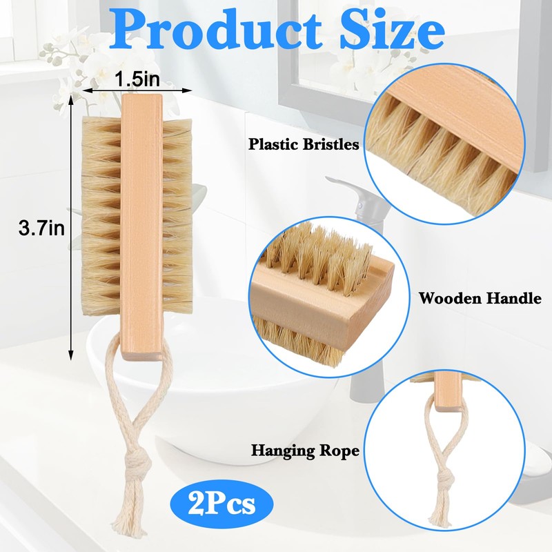 - 【Natural Wooden Nail Brush】The 2 PCS nail cleaning brush are Crafted from sustainable, eco-friendly wood for durable, long-lasting use. Perfect for gentle yet effective nail and hand cleaning