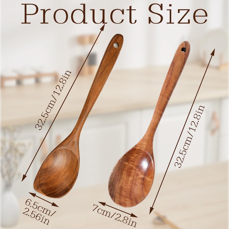 - 【Premium Natural Teak Wood】Crafted from high-quality, natural teak wood, these polished teak baking spoons are BPA-free and FDA certified, ensuring safety for all your cooking needs. The smooth, non-stick surface prevents scratching your cookware, making them perfect for non-stick pots and pans. Enjoy peace of mind knowing your wooden cooking spoons are safe, durable, and long-lasting.