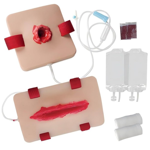 - 【Comprehensive Training】The stop bleeding training kit includes essential components for wound treatment practice. By using the accompanying 1-liter water reservoir bag, you can pump blood simulant into the wounds to simulate realistic bleeding. Practice the procedures for cleaning and dressing wounds in emergency situations with tourniquet