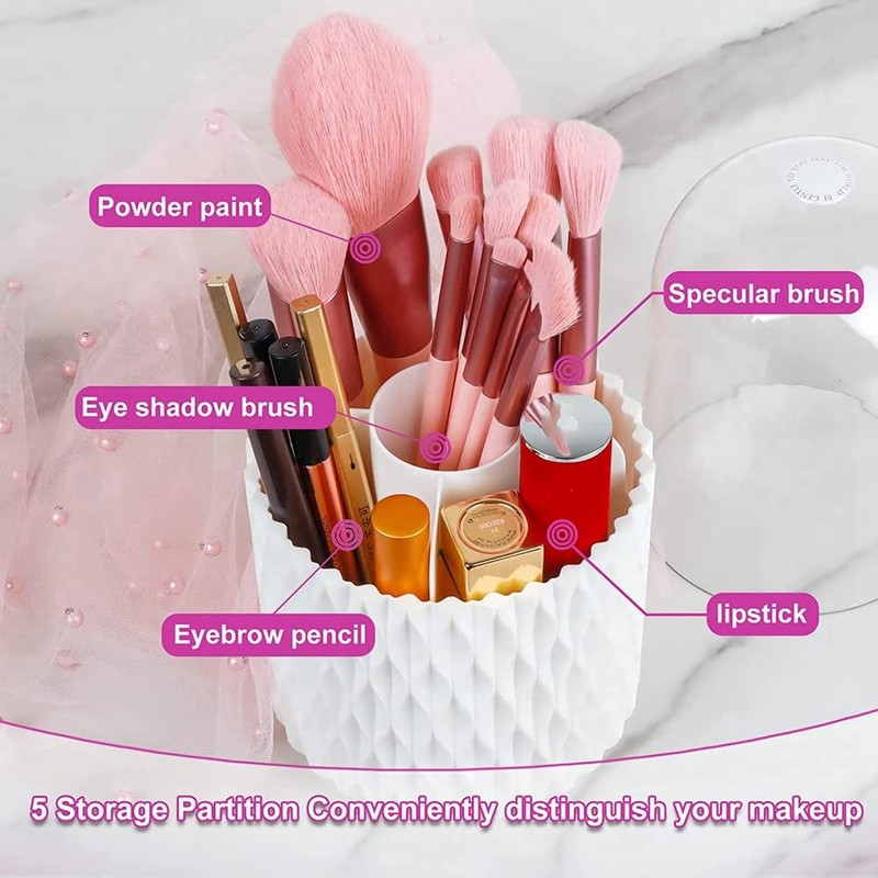 - [Makeup Brushes Within Reach] - Keep your makeup brushes within reach and on display with our clear waterproof dust cover. Store your makeup brushes perfectly on your tabletop, bathroom mirror or vanity and simply rotate them when