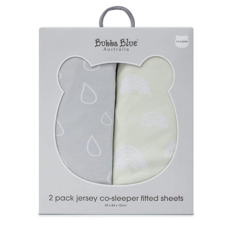 2PK Bubba Blue 55x84cm Nordic Jersey Co-Sleeper Fitted Sheet 0-12m Grey/Sand