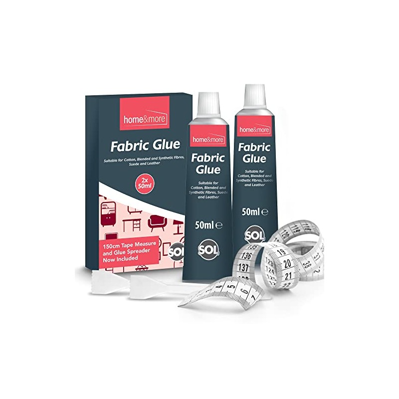 2pk Fabric Glue for Clothes | Includes 2 Fabric Glue Strong, Spreader & 150cm Tape Measure | Extra Strong 50ml Fabric Glue for Crafts, Upholstery, Material, Textile, Felt and Badges