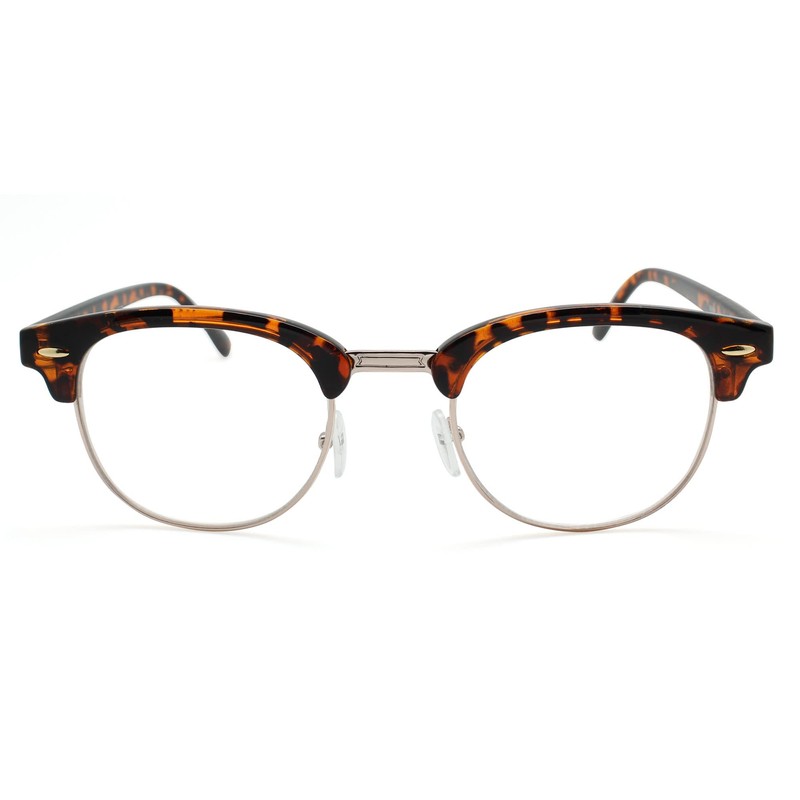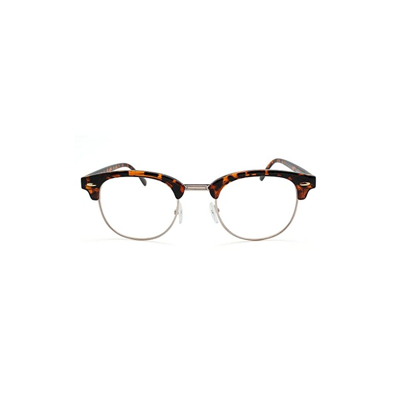 2SeeLife Classic Retro Browline Metal Half Rim Reading Glasses For Men and Women (Tortoise Gold, +1.25)