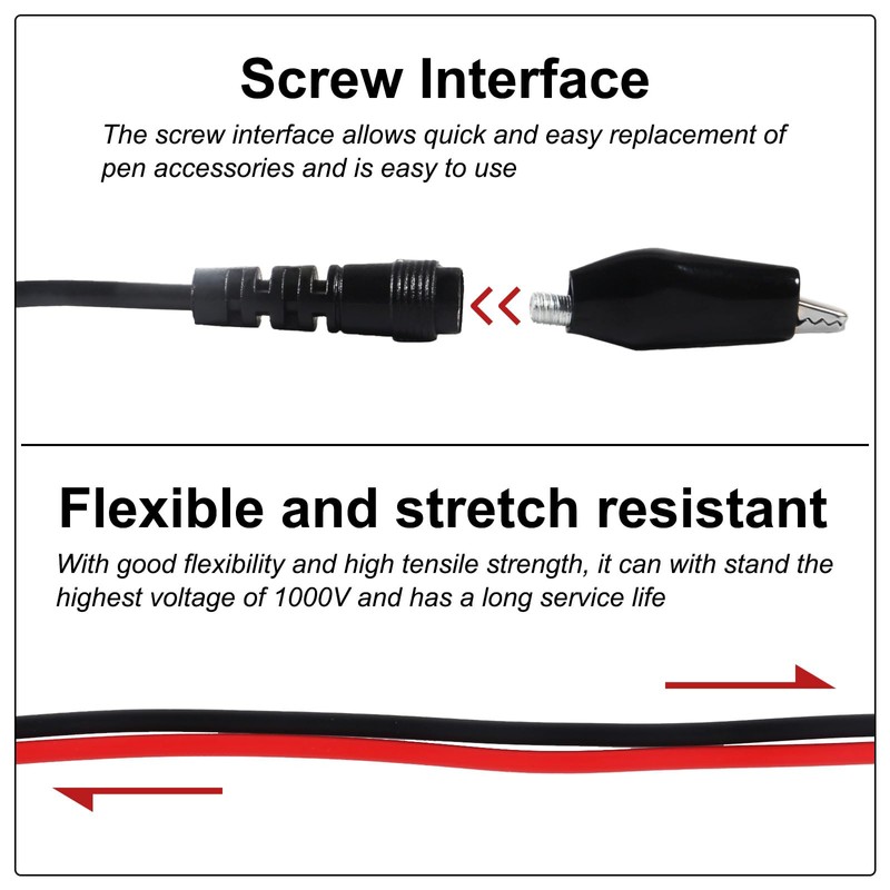 - Silicone insulation gives the pen handle and testing lead with power probes a super soft feel and thus the automotive multimeter test leads is more robust, U open insert multi-function combination line, replace the measuring pen accessories as needed, both ends of the testing leads are threaded sockets, which can be used flexibly with accessories.