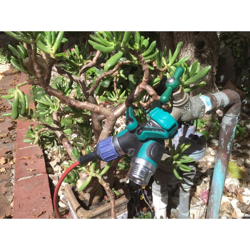 - SEAMLESS INSTALLATION, SMOOTH OPERATION: The 2 way garden hose splitter has long handles (4 cm) which allow for smooth and easy shut on and off. Because the splitter is coated with rubber, it is ideal for stiff hands or hands with arthritis. Other than a basic understanding of how spigots and hoses work, no tools are needed, ensuring an easy and flawless installation. The water hose splitter is also able to rotate 360 degrees, allowing you to tug and pull hoses in all directions.