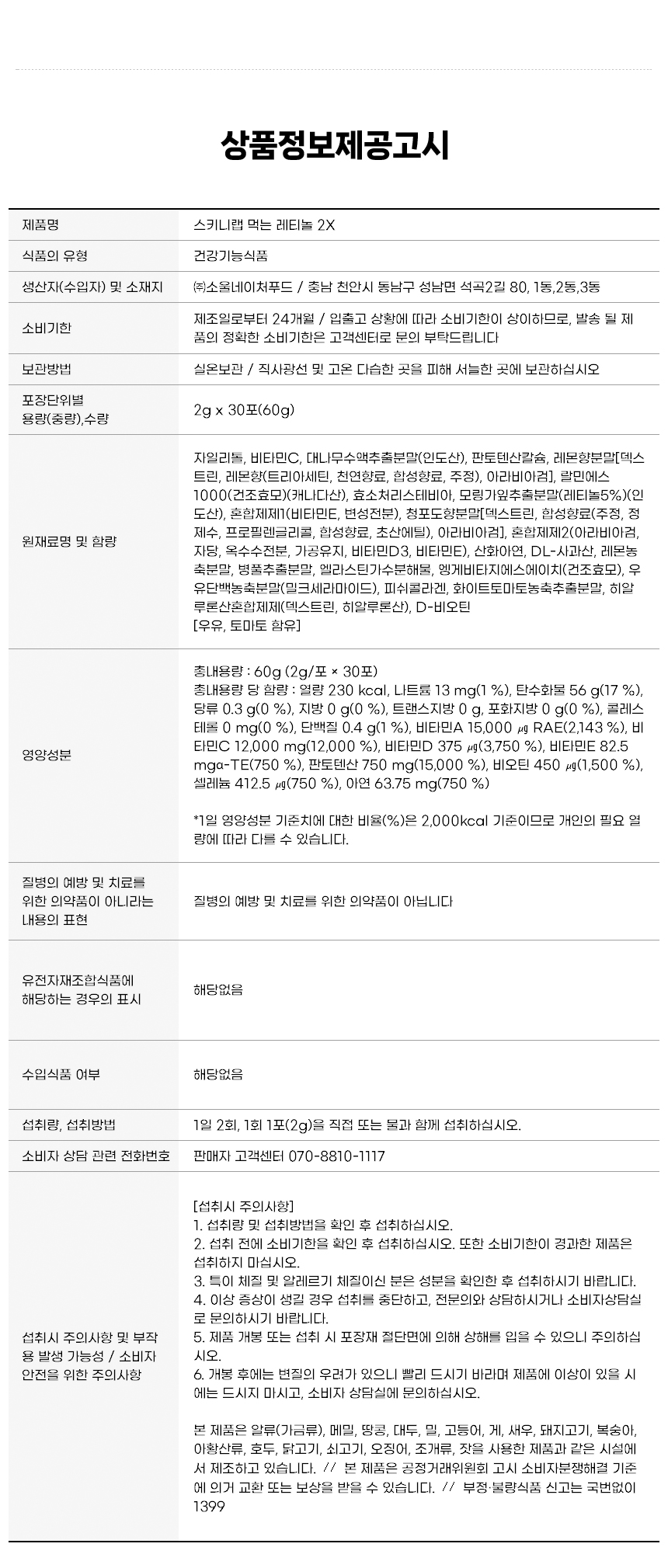 스키니랩 먹는 레티놀 2X 2g x 30포 Skinny Lab Retinol 2X 2g x 30 packets