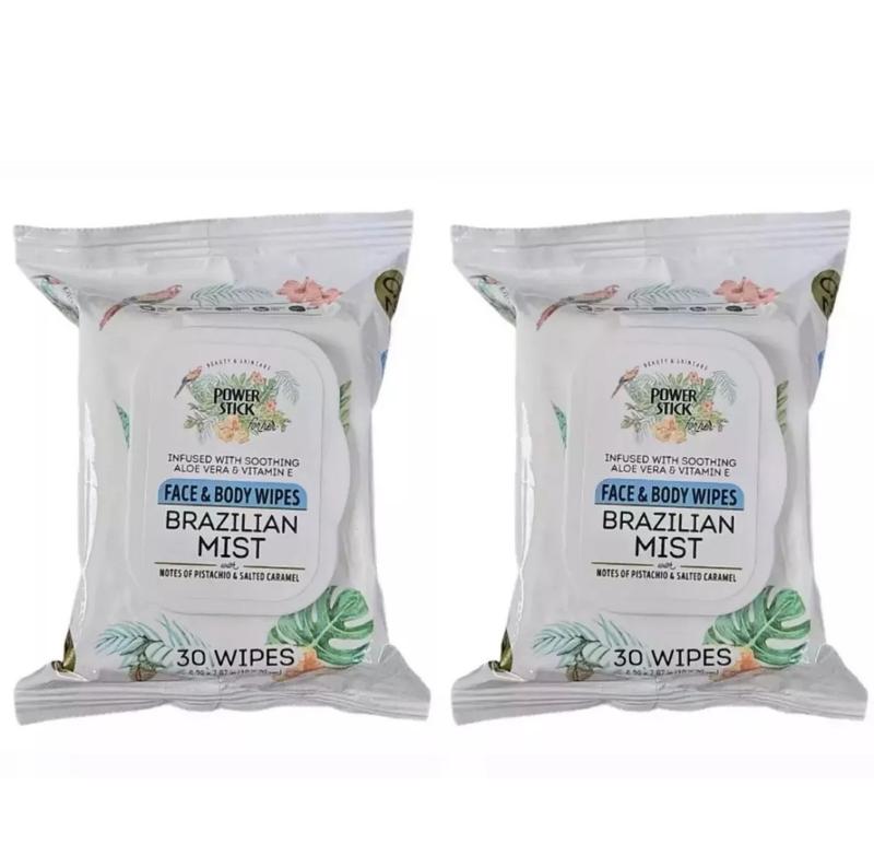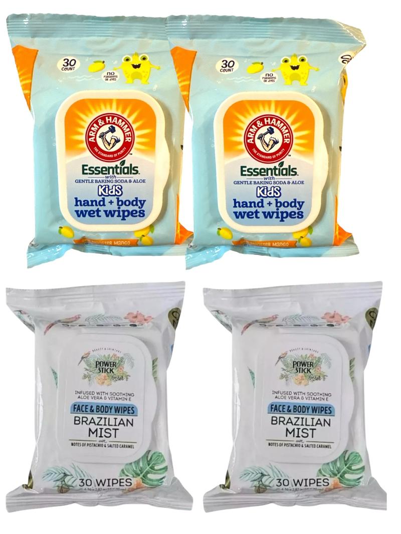 2x 30 Ct Face+Body Wipes - Brazilian Mist with Pistachio and Salted Caramel Notes, Infused with Aloe Vera and Vitamin E/ 2x30 Ct Essential hand and body, wet wipes with gentle baking soda and aloe-Body Care - Color: A&H Essential hand and body wet wipes