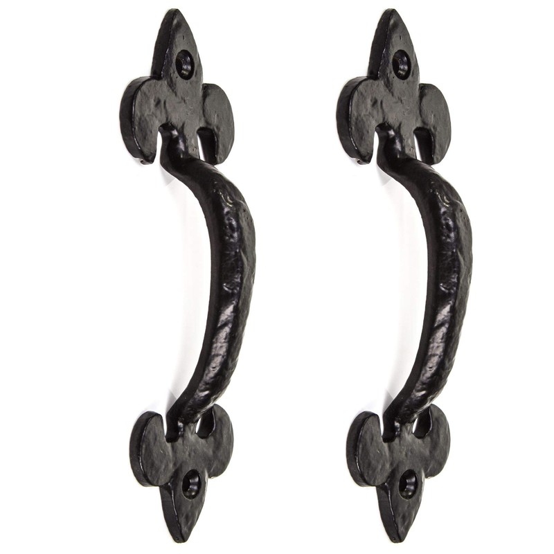 2X Black Cast Iron 7" Fleur De LYS Pull Handles