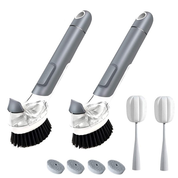 - [Kit include] There is 2X dish brush, 2X sponge refill in the combination to meet your various cleaning needs. The brush head can be easily removed and replaced.