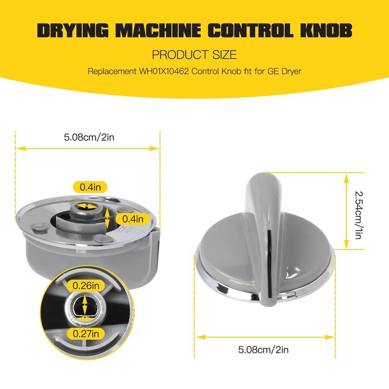 Features: Sturdy and Long-Lasting WH01X10462 Electric Dryer Knob D Shaped Shaft with reinforced metal ring. And this dryer timer knob replacement lets you control dyer or washer cycle settings