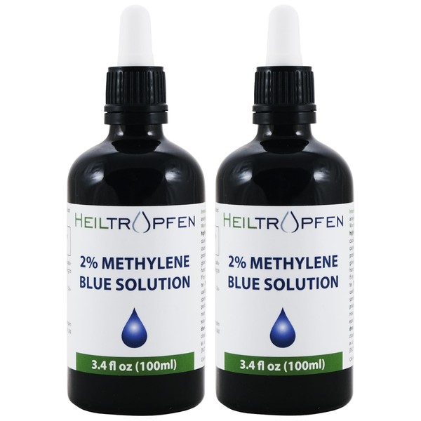 2X Hochkonzent Methylenblau 2% Lösung | 2X 3,4 Fl Oz – 100 ml | Ultrahohe Reinheit | Inhaltsstoffe in Pharmaqualität USP - Von Dritte geprüft | Formaldehydfrei | Glasflasche | 2er-Set | Heiltropfen®