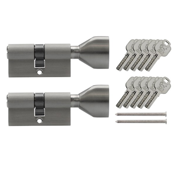 2x Knob Cylinder KSN 60 mm 30/30 Keyed Alike Including 10 Keys