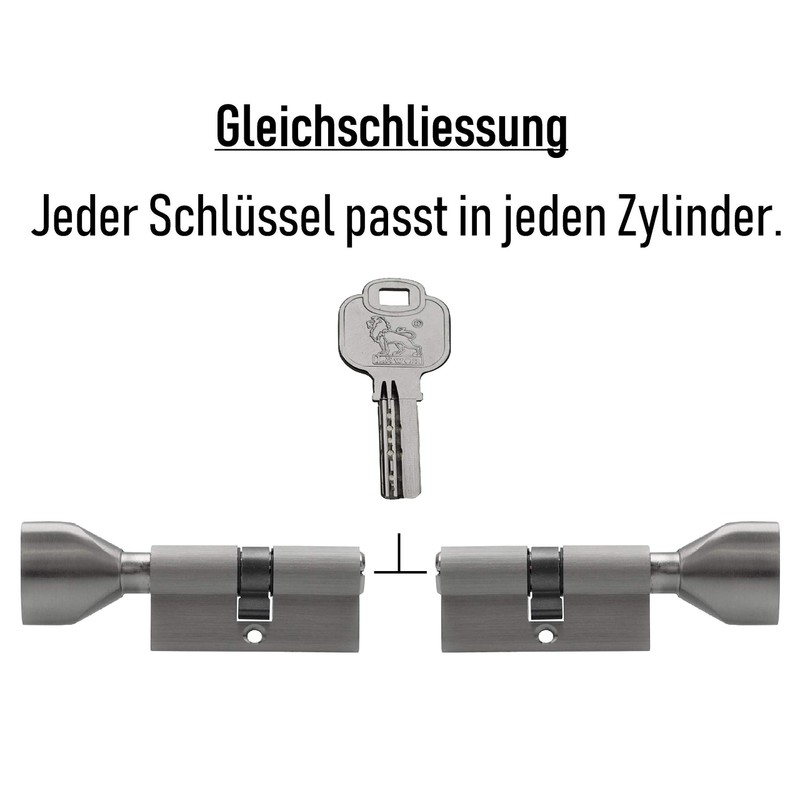 2x Knob Cylinder KSN 60 mm 30/30 Keyed Alike Including 10 Keys