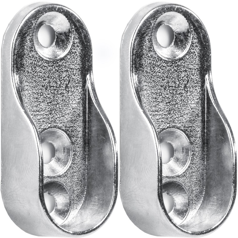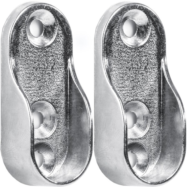 2X Oval Chrome Wardrobe Sockets |15mm Rod/Rail End Supports