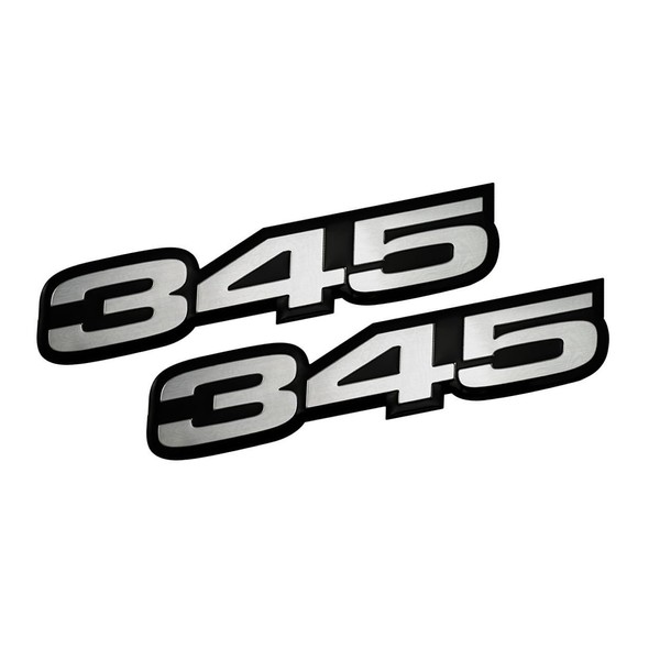 2X (Pair/Set) VMS Racing 345 Silver on Black Highly Polished Aluminum Emblems