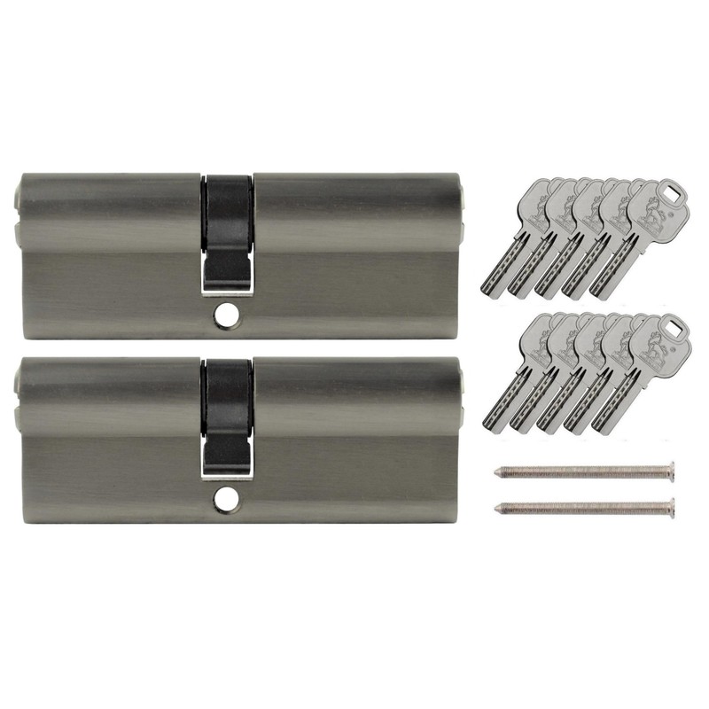 2x Profile Cylinder Lock 95 mm 45/50 Simultaneous Locking Including 10 Keys