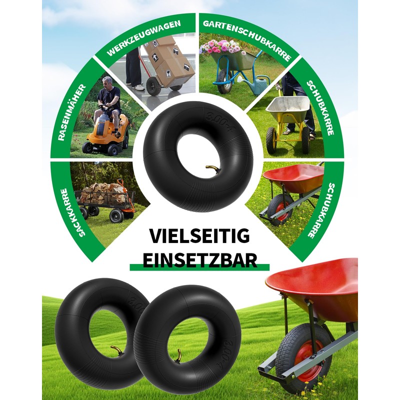 - Geeigneter Ersatzschlauch für Schubkarren: Zuverlässiger und stabiler Ersatz für beschädigte Reifenschläuche. Ideal geeignet für Schubkarren, Sackkarren, Standardkarren, Schlauchkarren, Gartenkarren, Rasenmäher, Hofanhänger und andere langsam fahrende Fahrzeuge.