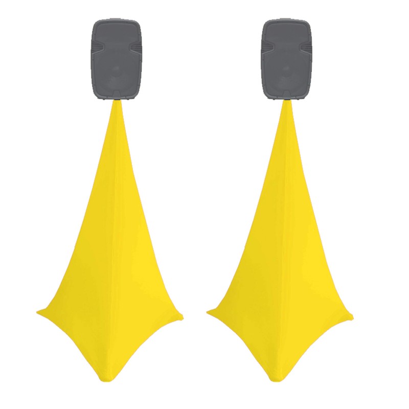 2x spandex stretch speaker stands scrims, DOUBLE SIDED tripod cover (yellow)